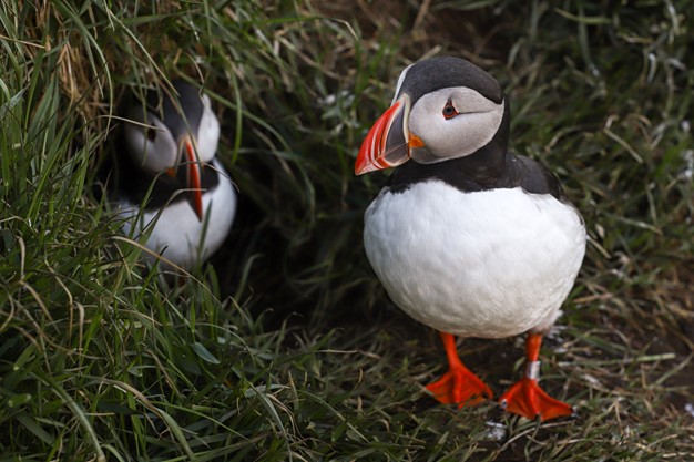4. Puffins co-parent, meaning both individuals take turns to watch their offspring while the other heads out at sea to fish.