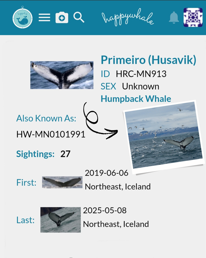 In fact, anyone can contribute to this way of identification: if you joined a tour with us and got some nice shots of the whales’ tails, you can upload your encounters on the website www.happywhale.com – and soon enough, you will know whether you observed an animal known in this area or spotted a newbie! Why not try?