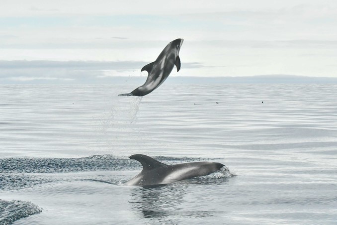 These playful, graceful dolphins are easily recognizable with their striking white markings, particularly around their beaks and sides. Often seen gliding through the cold waters of Skjálfandi Bay, they delight visitors with their energetic displays, leaping and riding the bow waves of boats.