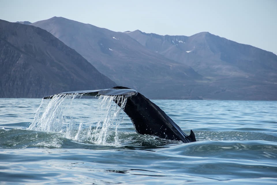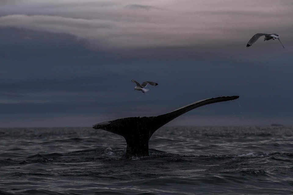 August has to come to an end and as the month has passed by, Skjálfandi Bay has experienced many changes. Whilst days have started to get shorter again, meaning that the night sky and the dancing aurora are throwing their shadows onto the mountains and the sea at nighttime, also many bird species are settling to leave. Lundey (Puffin Island) is empty since about a week now as all puffins have left their burrows behind to start their journey back to the open seas. Also the arctic terns and fulmars are finishing off their nesting season and we notice a lot fewer of them to be around. On the other hand, northern gannets have been frequenting the bay for the last two weeks. The largest sea bird of Iceland (as well as the largest species among the gannet family) with a wing span of up to 180cm could be observed hunting for fish or just flying past nearby our boats, often circling the area whales and dolphins were feeding in. As for our precious whales, the feeding season is far from over and we expect the humpback whales to stay with us for many more weeks!
