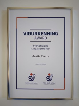 Fyrirtæki ársins í ár er Gentle Giants, sem hefur í yfir tuttugu ár boðið upp á hvalaskoðun á Skjálfanda. Hvalaskoðun er ákveðið hryggjarstykki í norðlenskri ferðaþjónustu og ein vinsælasta afþreyingin sem hér er boðið upp á, árið um kring. Það er ekki síst fyrir tilstilli fyrirtækja á borð við Gentle Giants, en stofnendur þess hafa unnið ötullega að uppbyggingu fyrirtækisins og um leið ferðaþjónustu á Norðurlandi öllu. Í samkeppninni sem ríkir í norðlenskri hvalaskoðun er vöruþróun og nýsköpun mikilvæg, og þar hefur Gentle Giants verið öflugt. Boðið er upp á fjölbreytt úrval ferða, sem snúast ekki eingöngu um hvalaskoðun heldur einnig fuglaskoðun, sjóstangveiði, hesta og jafnvel jóga – svo eitthvað sé nefnt. Fyrirtækið hlaut viðurkenningu frá Samtökum atvinnulífsins fyrr á þessu ári, sem Menntasproti ársins 2022. Þá viðurkenningu fékk fyrirtækið meðal annars fyrir mikla vinnu á sviði mennta-, fræðslu-, og þjálfunarmála innan fyrirtækisins en einnig fyrir uppbyggingu á samstarfi við aðila á svæðinu og samfélagslega ábyrgð.