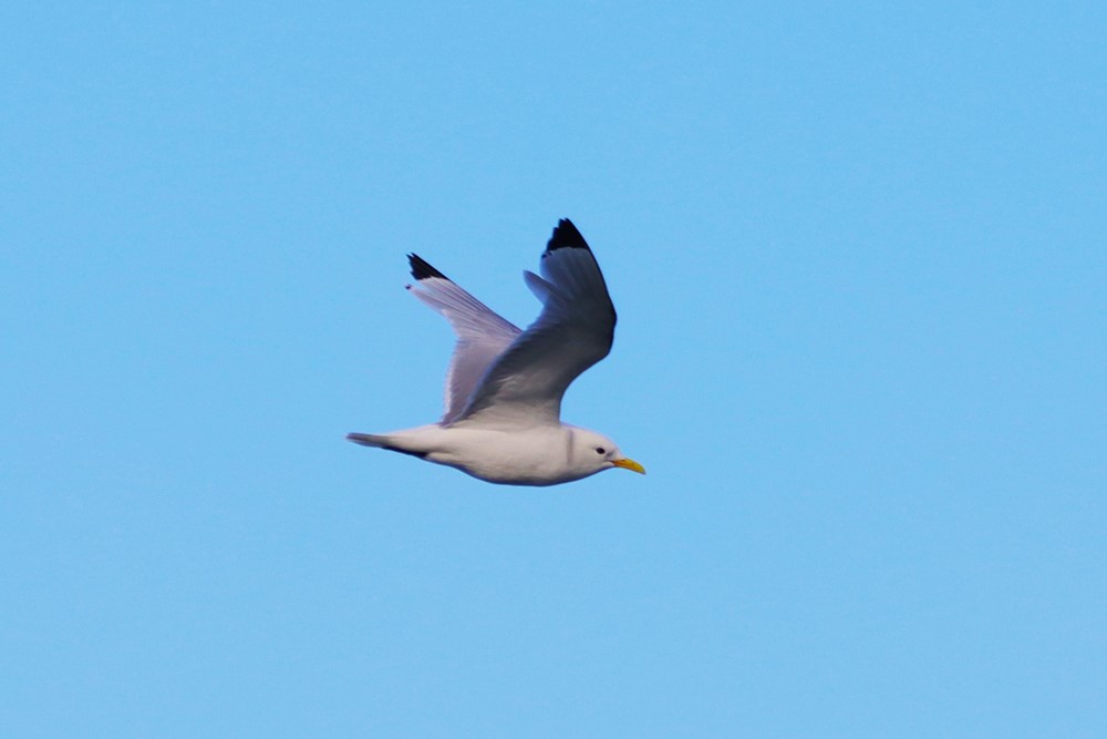 The Black legged kittiwake is a seabird species in the gull family. They have white head and body, grey wings, yellow beak and may live up to about 20 years old in the wild.
