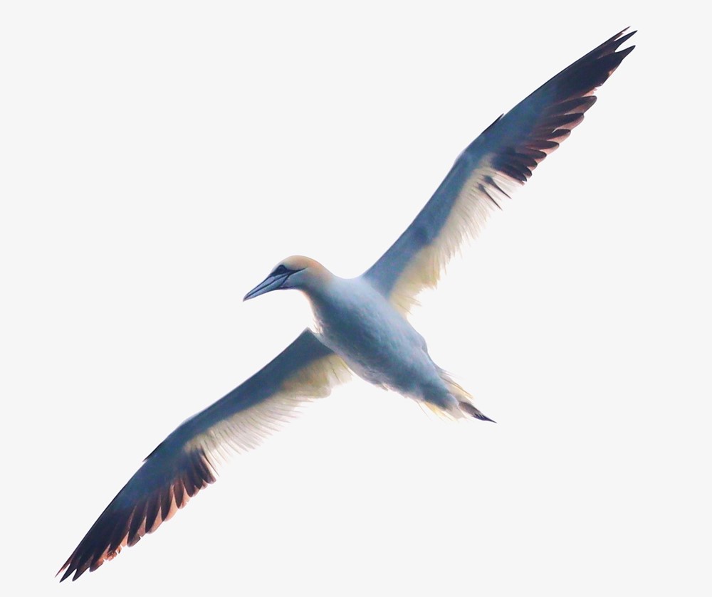 Occasionally, Northern gannets are seen flying in the bay. They are the largest seabird in the North Sea as the wingspan could be up to 2 meters. As a fishing bird, they are experts in diving into the water. They dive like torpedos, flying into water from a height of 30 meters and could reach a speed close to 100km/h. They also have excellent vision as their sharp eyes allow them to detect prey underwater amid the reflected and refracted light where water and air meet.