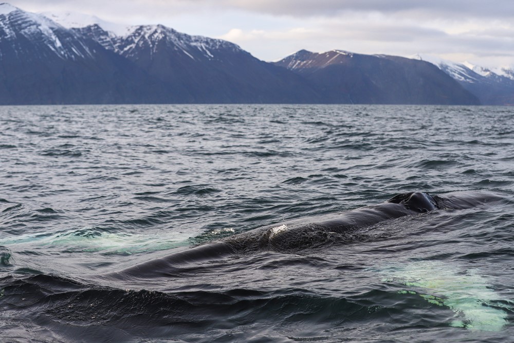 While this blubber layer is certainly great and reliable for maintaining the body temperature regardless the depth or temperature the whale is swimming in, it also stores energy. Most of the whale species we encounter are migratory and visit the waters around Iceland for a few months a year only. While here they feed on as much as they can, build up more and more blubber and doing so, gain fat reserves for the months to come in warmer waters - waters that won't supply the needed amount of food or where food is generally unavailable: their breeding grounds. Once arriving to tropical temperatures, the animals will then break down these reserves they've built up while here. The energy stored in the blubber is made up of both proteins and fat. Especially mothers who have migrated south to give birth depend on these resources as they will stay away from their feeding grounds for several months while having to supply energy to their own body and nurse the young calf.