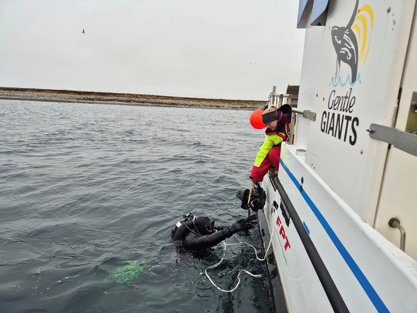 A few days ago, AÞena went out with our team and the crew from Strýtan Divecenter. They were responsible for all the diving and the mission was to photograph puffins underwater and on Flatey's land.