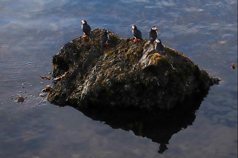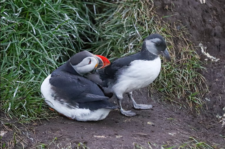 Their chicks, also called pufflings, have grown big and strong enough to now be on their own. Since earlier this month we are able to see them float on the water around the island from time to time.