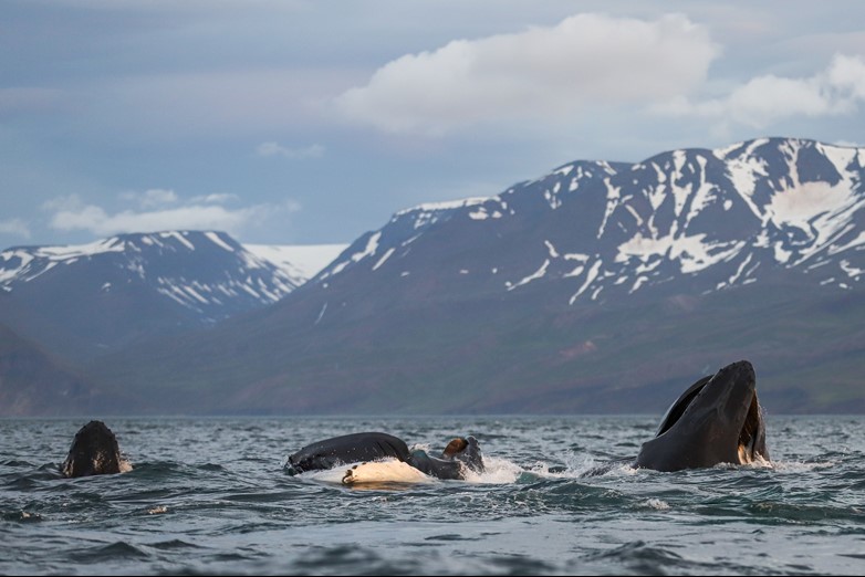 In recent years, humpback whales have been observed intervening in killer whale attacks on other marine mammals - probably as an attempt to intimidate the orcas in order to protect their own species and offsprings.