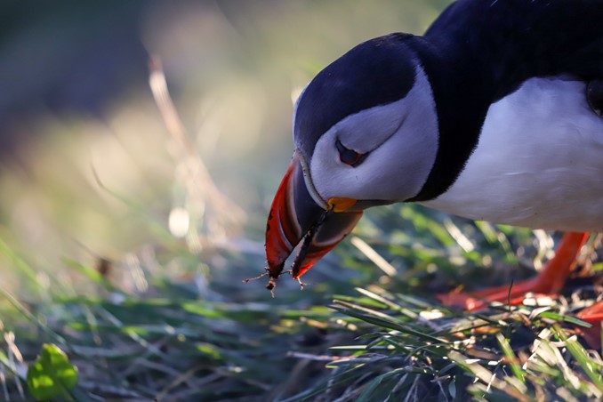 Unlike other seabirds, puffins don’t nest on open ledges, but instead, dig burrows into the soil. Using their beaks and feet, they dig tunnels that can be up to a metre long. These tunnels typically end in a nesting chamber, lined with grass, feathers, and other soft materials.