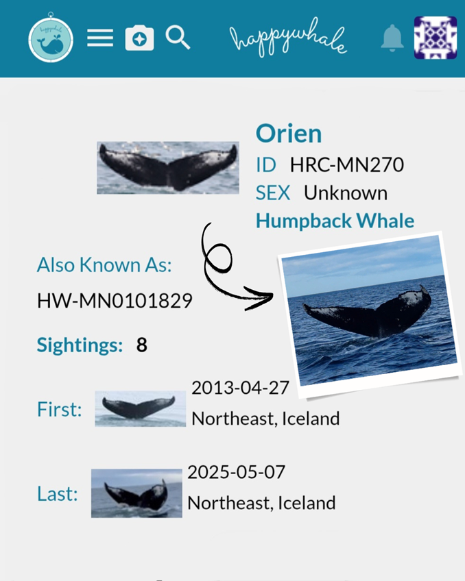 In fact, anyone can contribute to this way of identification: if you joined a tour with us and got some nice shots of the whales’ tails, you can upload your encounters on the website www.happywhale.com – and soon enough, you will know whether you observed an animal known in this area or spotted a newbie! Why not try?
