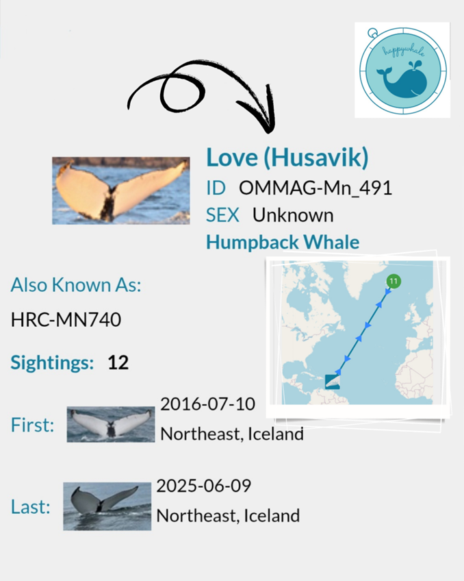 Another individual is Love. Love first appeared around Iceland in 2016, and returned for two consecutive years. While not having shown up in 2019, she was then sighted completely elsewhere in late January 2020: Guadalupe! And while we still don't know where Marí will venture after its journey to the British Virgin Islands, Love has returned to Skjálfandi Bay (Húsavík) earlier this month!