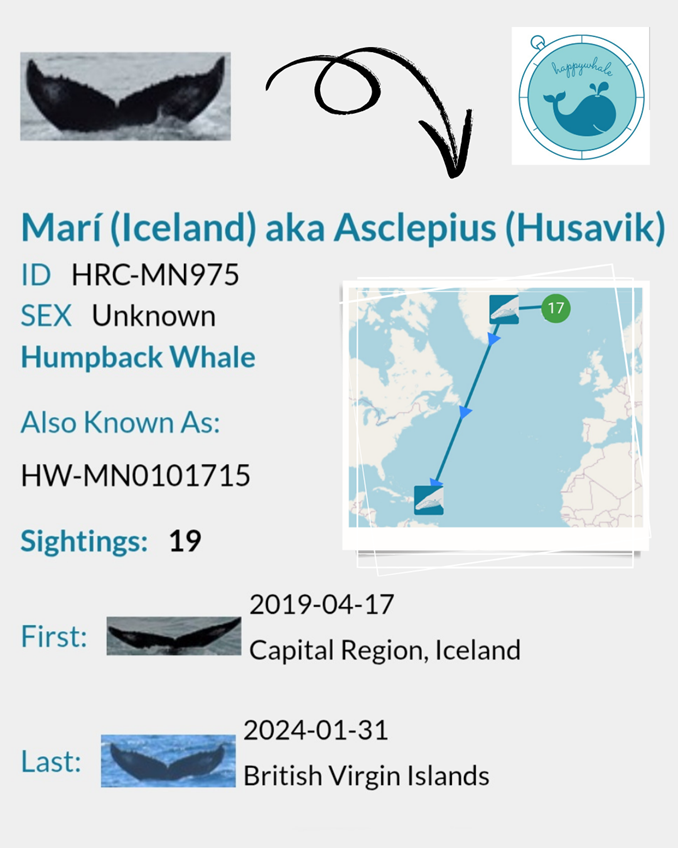 One of them is Marí / Asclepius who was first sighted around Iceland in 2019. Between then and 2022 it has shown up in various areas around our country. Then, in 2022 it ventured even further north to Sermersooq, Greenland.