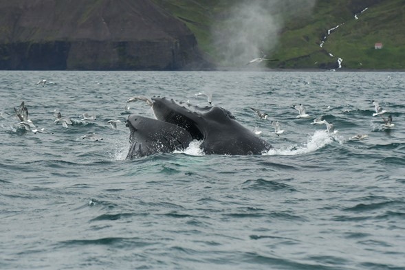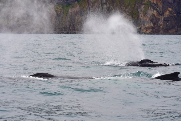 Some days, it was impossible to tell how many humpback whales were actually roaming the bay in search for food and oftentimes, we'd see several of them feeding either together or in the same area! Sometimes, whichever direction one looked, their spouts were shooting up from the surface, near and far!