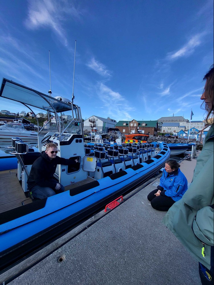 On the RIB side, Sverrir Yngvi Karlsson, our head captain for the RIB boats, led a similar training on Amma Helga, Jóhanna, Sigga, and Kibba. He showed the emergency procedures for each vessel, and the crew even got to practice driving the boats—ensuring that everyone knows what to do, no matter the situation.
