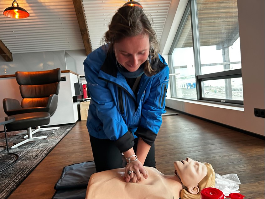 Eysteinn walked us through the importance of first aid, explained common emergency scenarios that might happen on a boat, and showed us how to respond quickly and calmly.