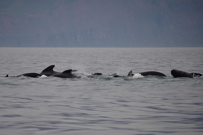 Adding to the diversity, also less commonly seen species made an appearance: two groups of bottlenose whales were sighted now and then throughout the last weeks, while a sei whale roamed the bay for two consecutive days. Last, pilot whales added energy and movement both at the start and the close of the month.
