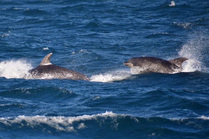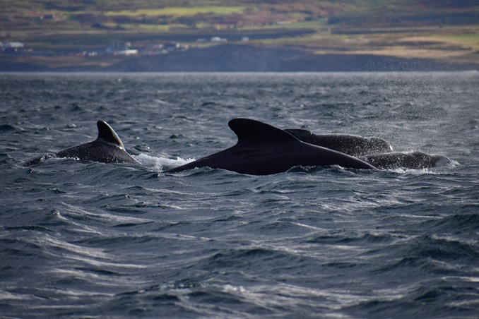 What is making our most recent encounters especially remarkable and unique is that the pilot whales are accompanied by bottlenose dolphins—a species not usually found this far north, and never before in Skjálfandi Bay!