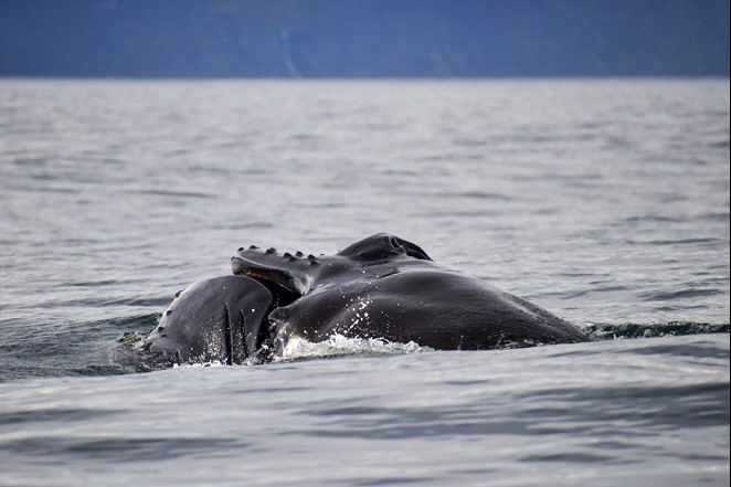 Over the past few days, even though they’ve been shifting their location slightly each day, about ten individuals have often been spotted in close proximity. On some tours, we’ve enjoyed continuous sightings of blows, flukes, and whale backs throughout our entire time in the whale area.